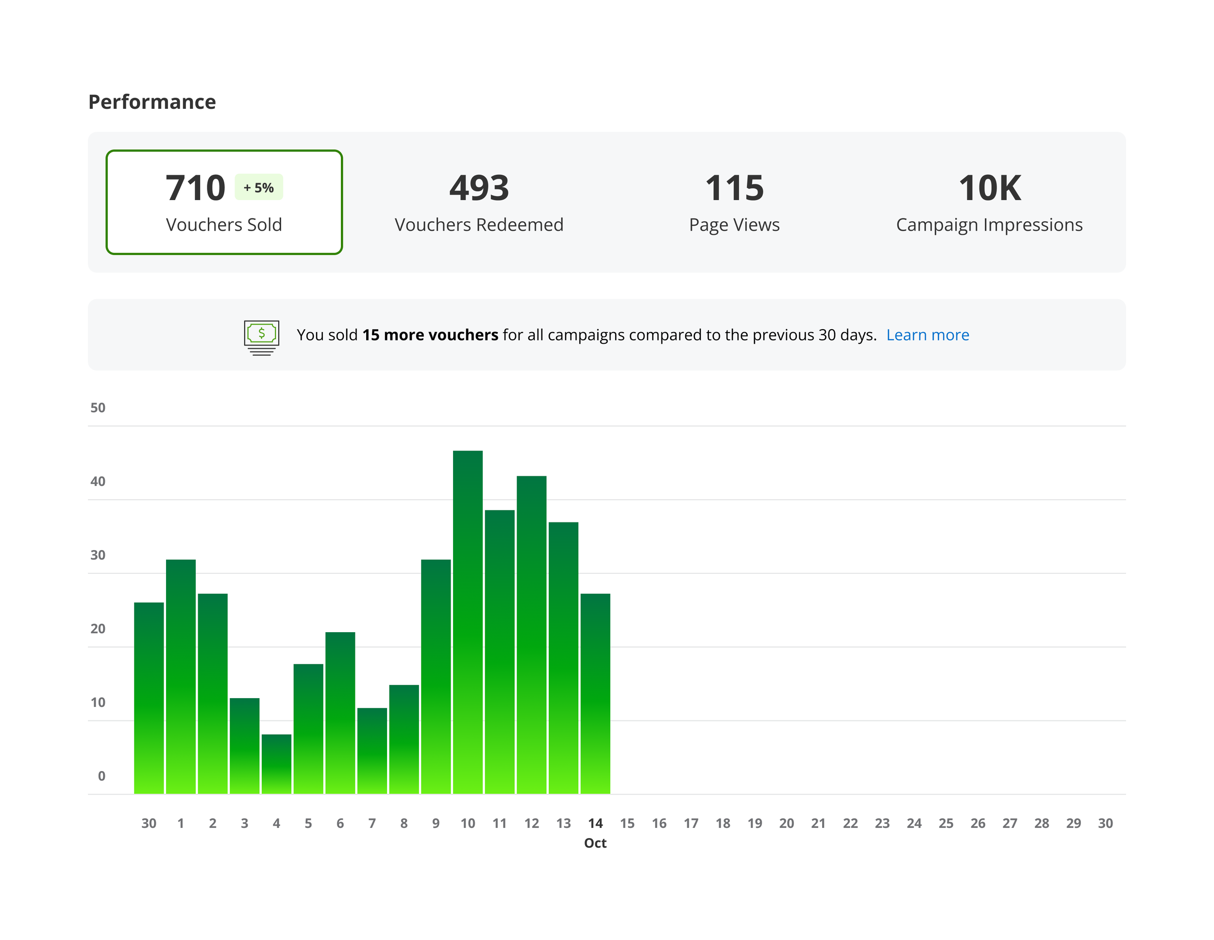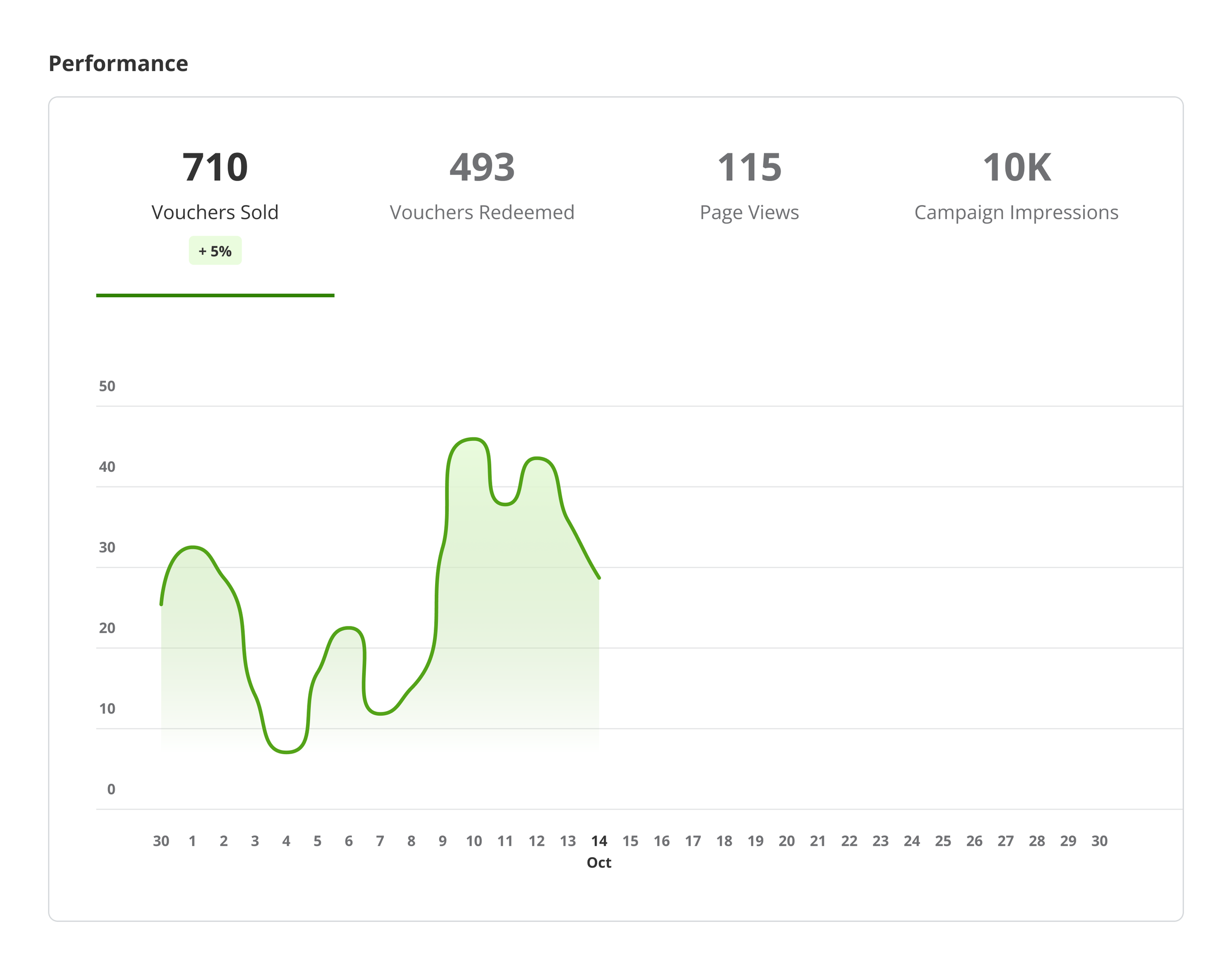 I also explored the possibility of displaying page views and campaign impressions as read-only metrics, and not charting them on the graph. Only the vouchers sold and redeemed would be interactive in this example.