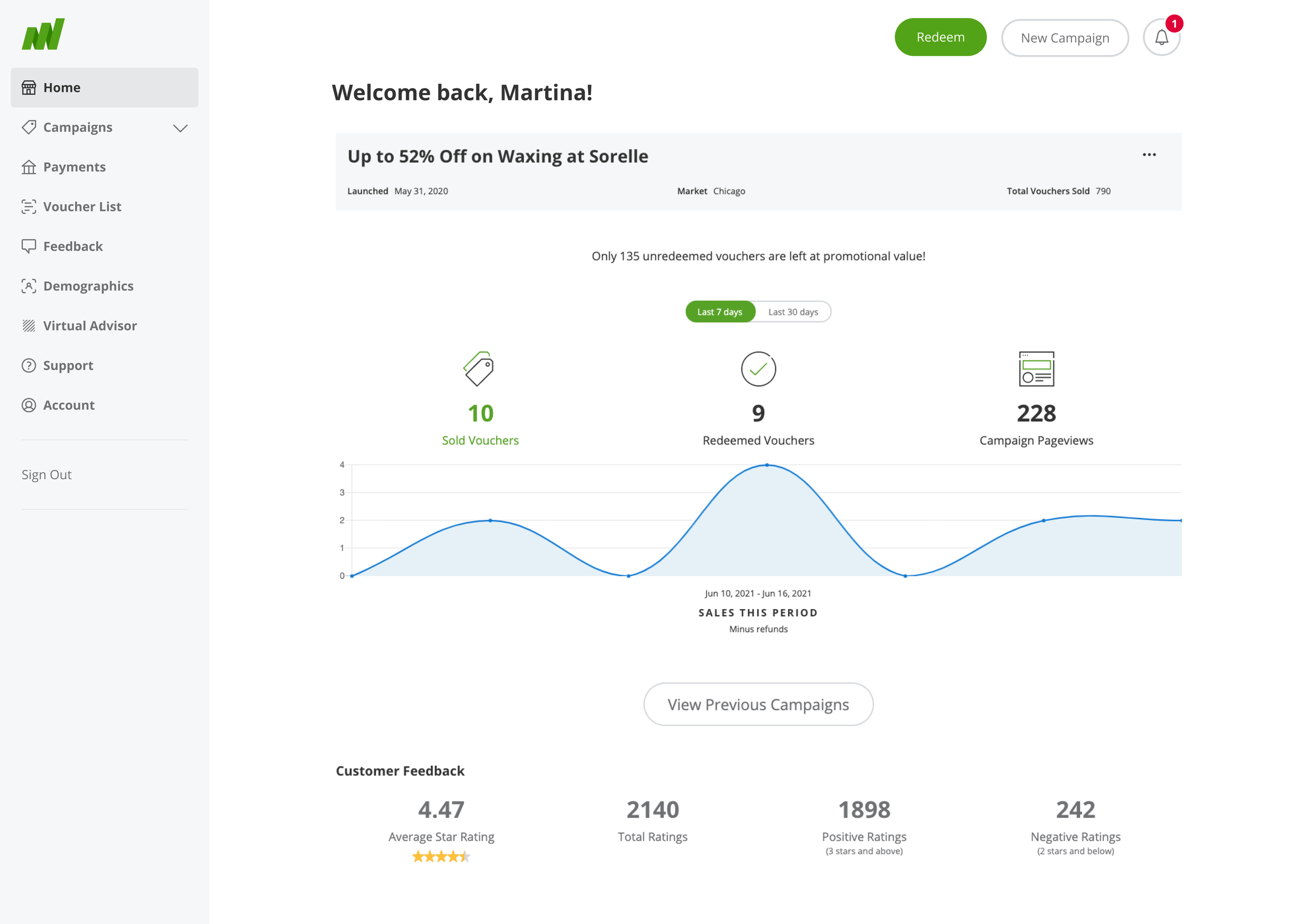 Groupon Merchant Center dashboard redesign